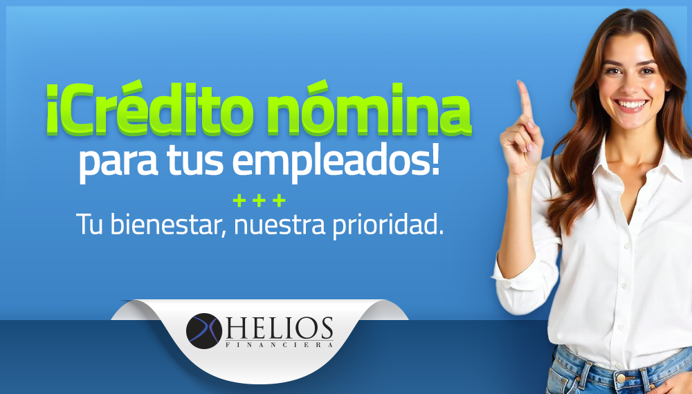 Pensando en ti, en tu tranquilidad y en darte soluciones reales, en Financiera Helios hemos diseñado un producto exclusivo para empleados de empresas afiliadas: el Crédito Nómina. Una forma ágil y segura de obtener el dinero que necesitas ¡justo cuando lo necesitas!